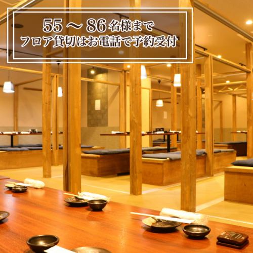 【畳エリア貸し切り全席55~最大86名】座敷個室フロアの全席開放希望はお電話で!全席使用の場合は柱などで全員の顔が見渡せない場合がございます。